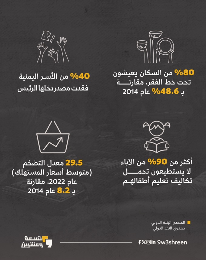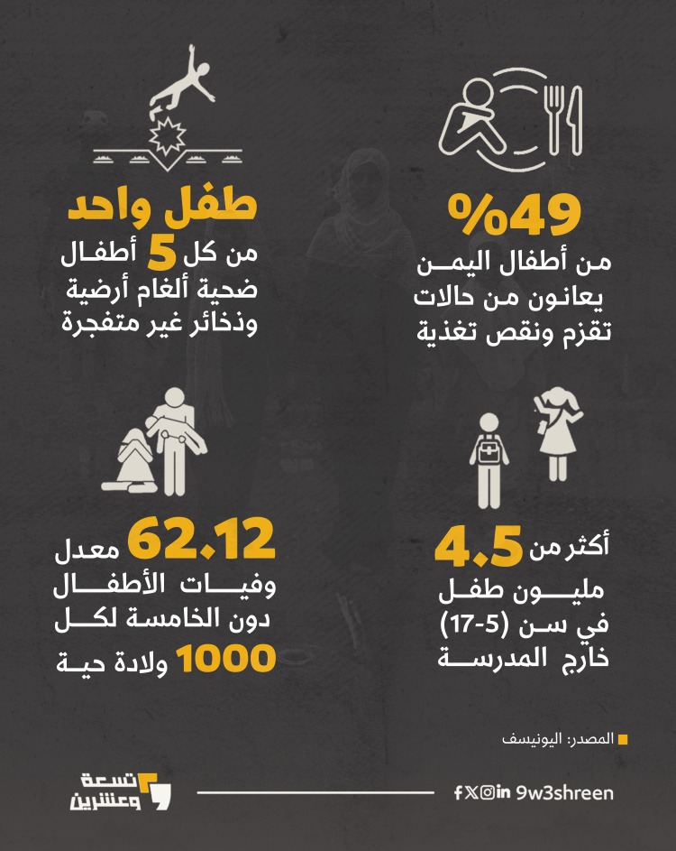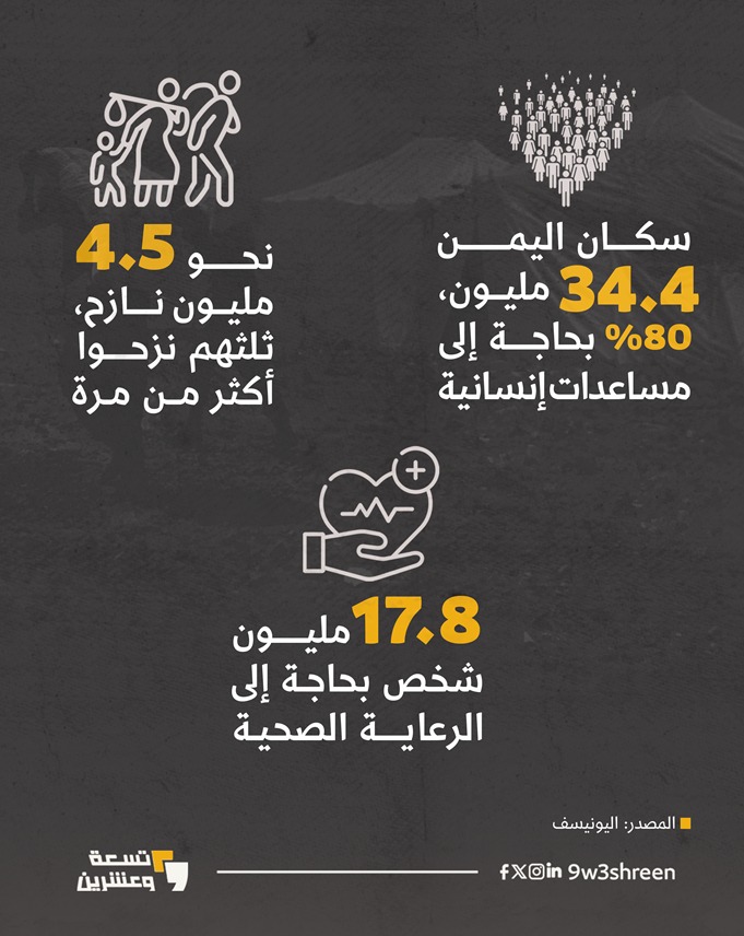 أدت الحرب في اليمن المستمرة نحو 10 سنوات، إلى العديد من الخسائر البشرية والمادية.. 29 تلخص أبرزها في 5 رسوم